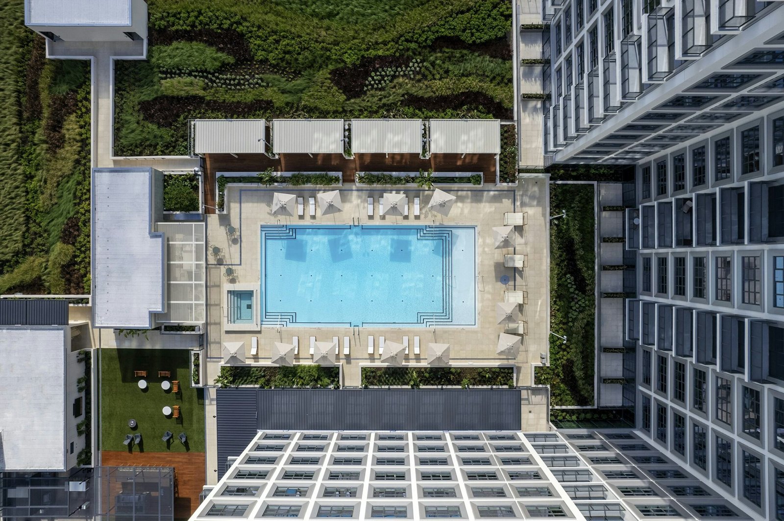 As a nod to Tampa’s industrial past, Asher’s facade features a grid of factory-style windows that flood interior spaces with natural light. With an unparalleled package of indoor-outdoor amenities, including a lush rooftop pool surrounded by enclosed cabanas, the new multifamily building offers residents resort-like experiences within the city’s evolving urban context.